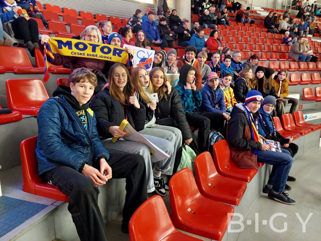 Studenti nižšího gymnázia se zúčastnili projektu „Třídy fandí Motoru.“ Do povzbuzování domácích hokejistů dali naši studenti všechno.