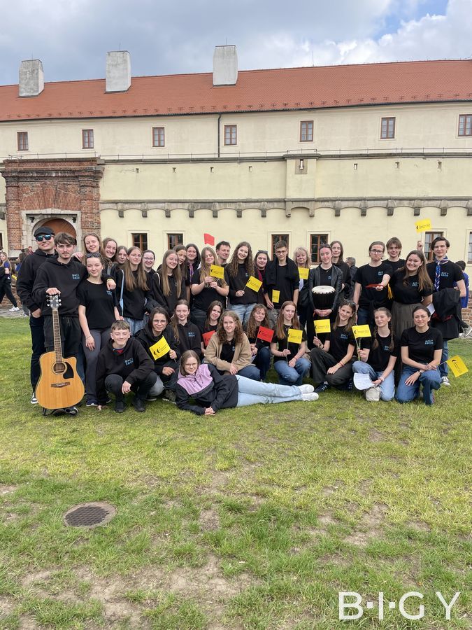 V pátek přišel hlavní okamžik: naše soutěžní vystoupení. Tréma byla, ale jakmile jsme vstoupili na pódium, převládla radost ze společného zpěvu a společně sdíleného okamžiku. Následovalo soukromé poslední zvonění našich maturujících. Večer jsme pak zakončili velkou akcí Sbory Sborům.