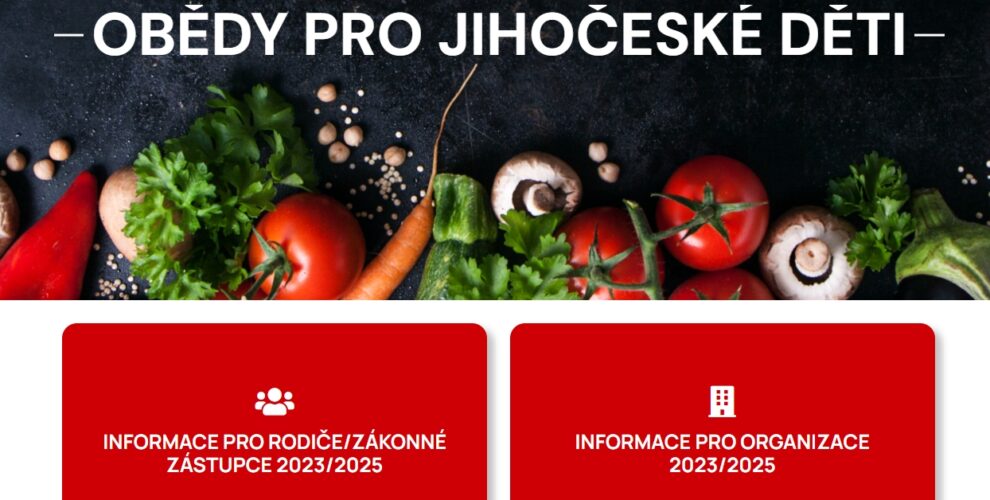 Obědy pro jihočeské děti Vážení rodiče, zákonní zástupci, zletilí žáci, od 18. července 2025 je vyhlášena výzva Jihočeského kraje k
