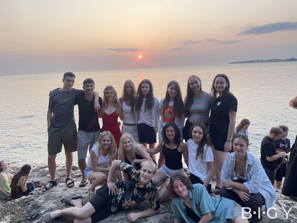 Dne 6.6. jsme se společně s celým předmaturitním ročníkem našeho gymnázia, tedy s třídami 5.F, 5.N, 5.E, 4.C a 7.A, vydali vstříc létu a prosluněným plážím Istrie. Celý týden jsme strávili v chorvatské Lanterně, ze které jsme každý den vyjížděli na dopolední cyklistické výlety po okolí. Takto jsme navštívili město Czervar, Poreč, Rovinj a jeskyni Baredine. Odpolední čas jsme společně trávili na pláži sluněním, koupáním a trénováním na volejbalový turnaj, který se během našeho pobytu uskutečnil. Program byl obohacen i o každodenní ranní výběhy kolem moře s Vondym a Pekym.