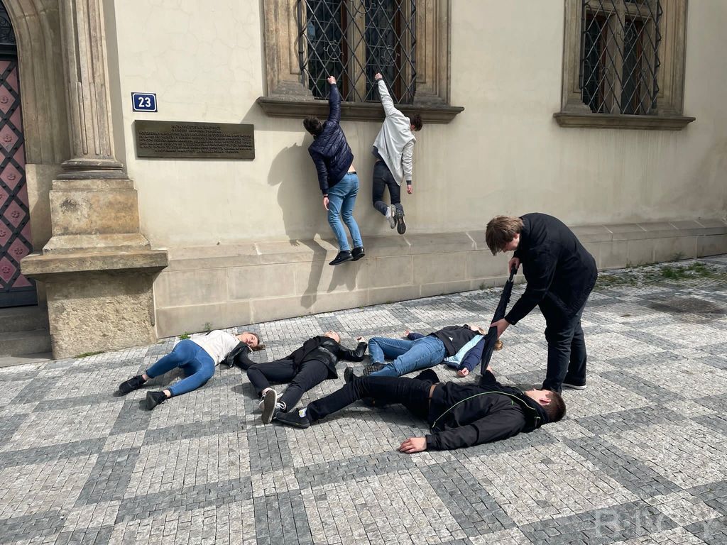 Další den, čili ve středu, nás samozřejmě čekal dějepisný program. Dopoledne jsme se vydali po stopách hrdinů heydrichiády – navštívili jsme kostel sv. Cyrila a Metoděje, kde se před nacisty ukrývali např. Jan Kubiš a Josef Gabčík. Po pauze na oběd jsme zavítali do Národního muzea, které jsme si po základní prohlídce mohli procházet podle chuti. Nesměla chybět trocha té kultury, a tak jsme večer v letním divadle Ungelt měli možnost shlédnout divadelní představení “Housle”.