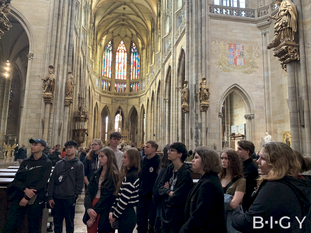 Následná prohlídka Pražského hradu a chrámu svatého Víta nesmí na výletu do Prahy chybět. Večer jsme se řádně ustrojení vydali do divadla Na Fidlovačce, na komedii “Hoří má panenko” , které sloužilo jako dobrá chvíle k odpočinku po dni plném historie.