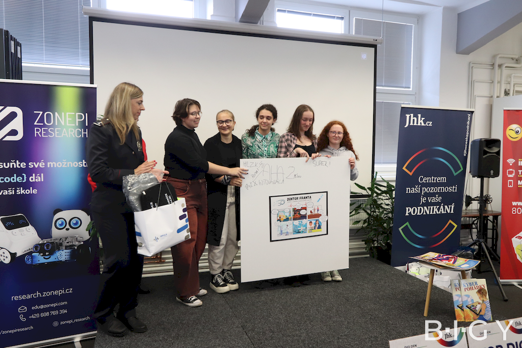 Bergerová se svým komiksem „Ztráta zaměstnání“. V kategorii týmů pak soutěž ovládl tým složený z žákyň 2.F – Veroniky Hovorkové, Nely Šuldové, Layly Sehadové, Markéty Seidenglanzové a Barbory Vopelkové s komiksem „Doktor Franta“.