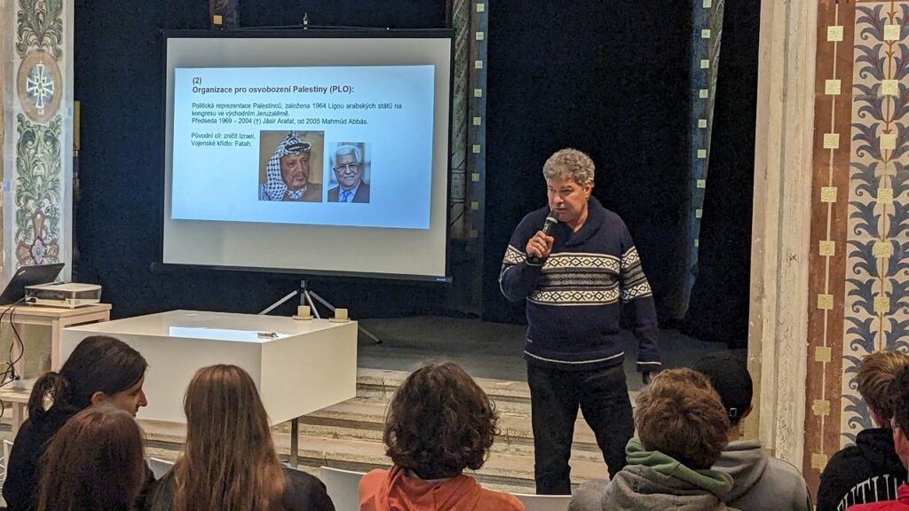 Jedním z cílů Bigy je předávat relevantní informace o aktuálním dění ve světě. Mgr. Tomáš Malina, který vyučuje na našem gymnáziu dějepis, si připravil pro předmaturitní a maturitní ročníky přednášku o izraelsko-palestinském konfliktu, která se konala v kostele sv. Rodiny.