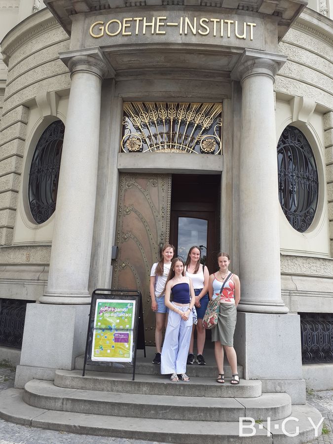 Dne 25.6. navštívili vítězové literární soutěže Bücherwurm – Knihomol Goetheinstitut v Praze. Za Biskupské gymnázium jely dívky z 2.N Karolína Augustinová, Kateřina Kuželová, Dominika Kosmáková a z 3.N Zuzka Bícová. Studentky a studenty čekal zajímavý program v podobě únikové hry Agent Deutschland a prohlídka knihovny. Po dobrém obědě jsme se prošli centrem Prahy a s novými zkušenostmi jsme se vrátili domů.