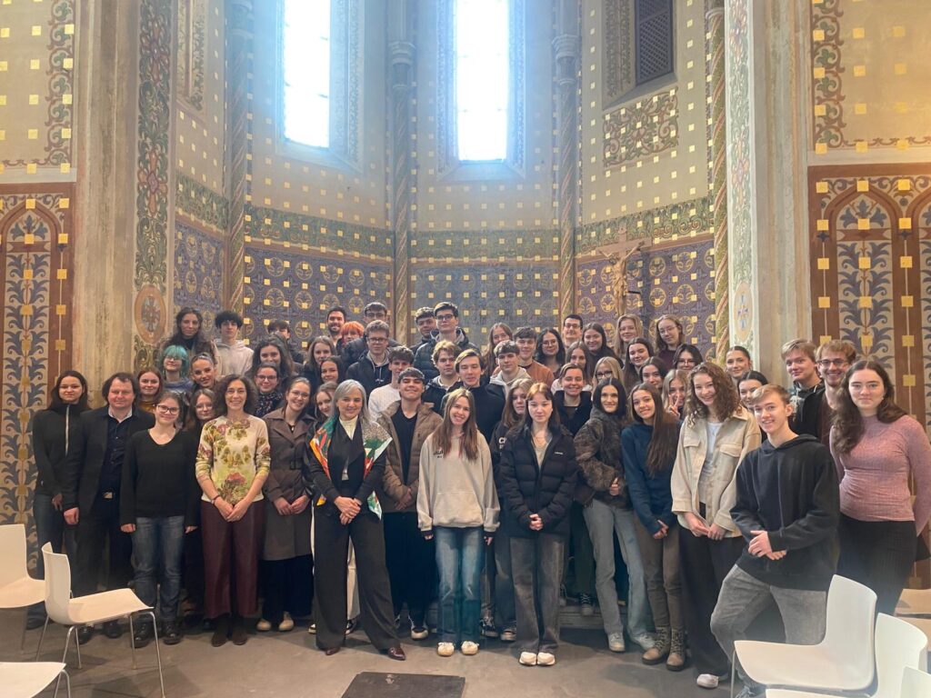 Dne 3. března naše gymnázium poctila svou návštěvou paní velvyslankyně Španělského království J. E. María Pérez Sánchez-Laulhé. Setkání proběhlo ve Studentském kostele svaté Rodiny a během více než hodiny jsme měli možnost paní velvyslankyni klást nejrůznější otázky, a dozvědět se tak mnoho o její práci i o jejím pobytu v České republice. Nebyla to pro nás jen slavnostní událost, ale i inspirativní setkání.