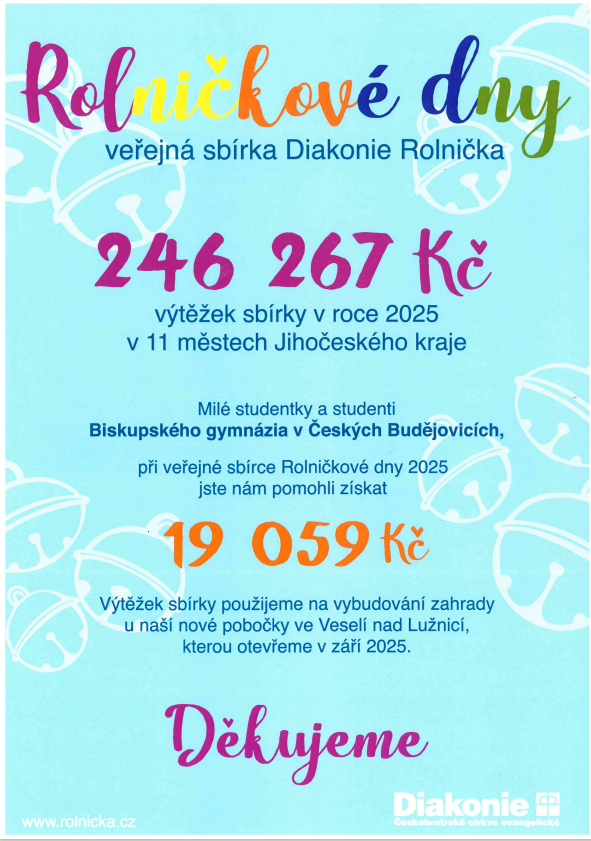 Děkujeme třídě 3.N za obětavou pomoc se sbírkou pro Rolničku