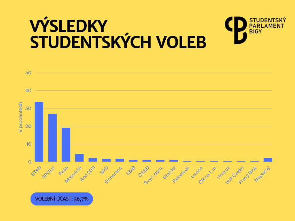 Ve středu 17. září jsme se zúčastnili simulace voleb do Poslanecké sněmovny v rámci organizace Jeden svět na školách. Zde jsou výsledky: