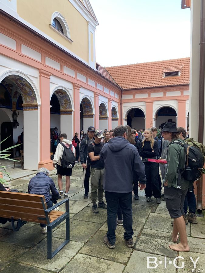 Letos jsme vyrazili ze zastávky Velešín – město a vydali se pěšky směrem do Římova, kde nás čekala delší zastávka na občerstvení a hry, které připravili P. Mikeš a třída 4.F – tímto jim děkujeme za skvělou organizaci i dobrou náladu, kterou pomohli vytvořit. V Římově jsme na chvíli spočinuli u známého poutního areálu s loretánskou kaplí, který je významnou kulturní památkou regionu.