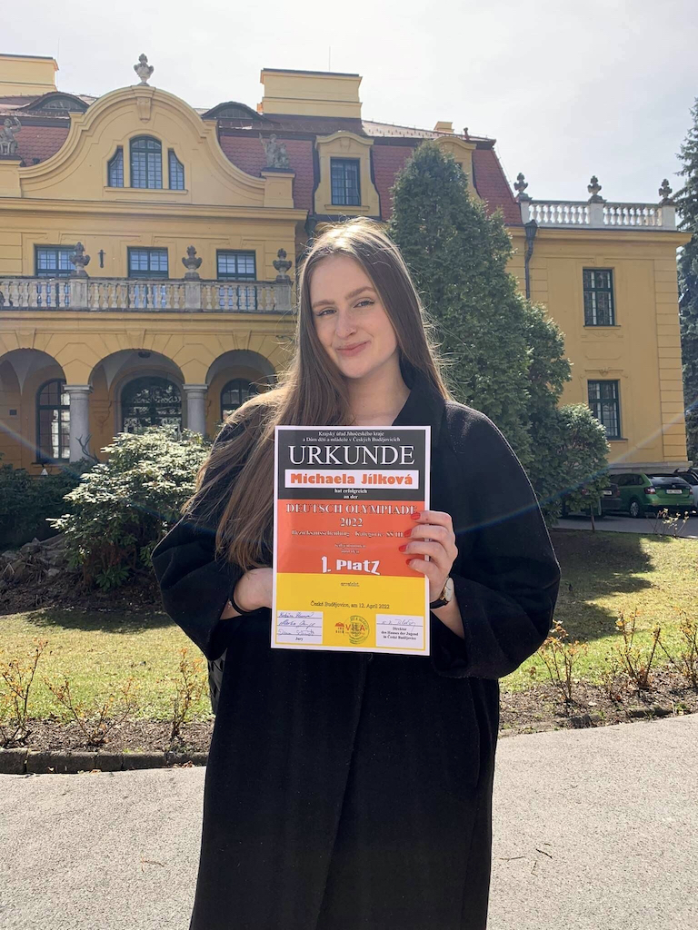 Dne 12. dubna se konalo krajské kolo olympiády v německém jazyce. Jedná se o prestižní a velmi silně obsazenou kategorii středních škol. Vítězkou se stala Michaela Jílková z 5.N. Studentka se na všechny hodiny němčiny připravuje velmi pečlivě a stejně zodpovědně pojala i přípravu na soutěž. K odměně v podobě knižní poukázky získala rovněž přihlášku na letní kurz němčiny do Rakouska, kde by Míša chtěla po maturitě studovat.