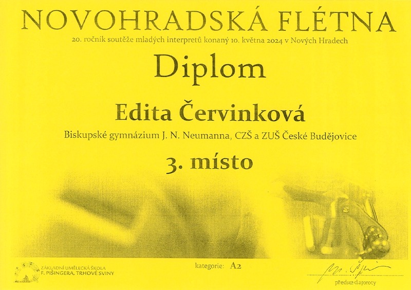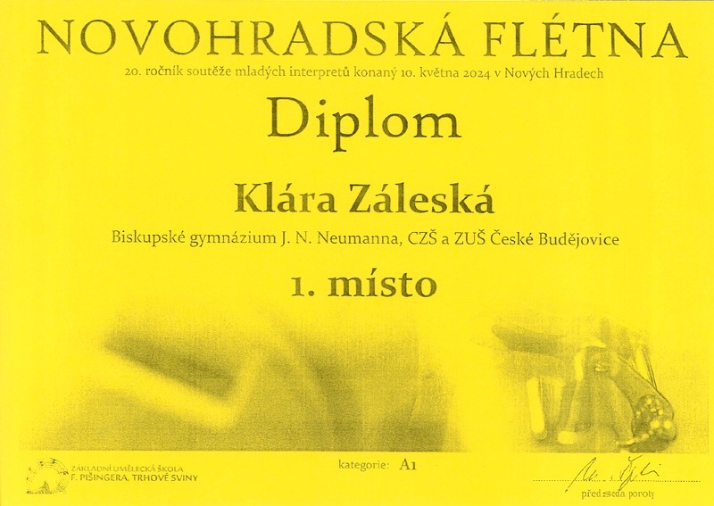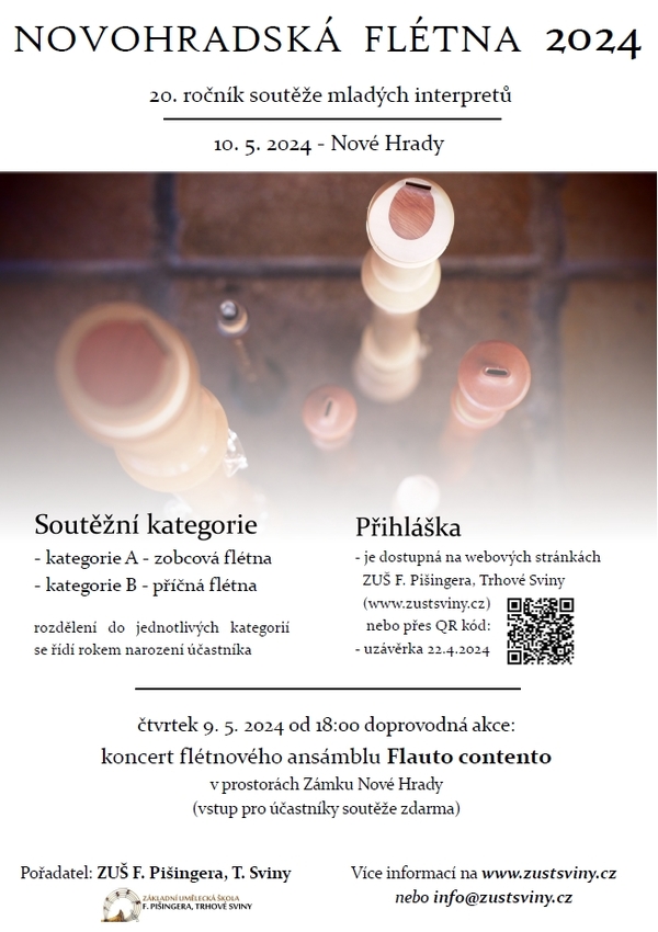 Žáci flétnové třídy se letos zúčastnily přehlídky Novohradská flétna, která je každoročně pořádána Základní uměleckou školou F. Pišingera, Trhové Sviny v prostorách Státního hradu v Nových Hradech. Soutěžící jsou rozděleni do kategorií A (zobcové flétny) a B (příčné flétny), dále pak podle věku. Přehlídka probíhá celý den. Kromě poslechu ostatních flétnistů měli žáci možnost prohlédnout si areál Hradu.