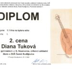 2. cenu ve hře na kytaru získala 27.2.2024 Diana Tuková. Ta soutěžila v ZUŠ na Piaristickém náměstí. I zde byla velká konkurence (soutěžilo 54 sólových kytaristů, samozřejmě podle věku rozdělených kategoriích).
